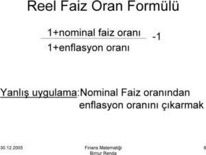 Ancak aynı dönemde enflasyon oranı %5 ise hem anapara, hem de elde edilecek faiz tutarı (1.000,00 tl) %5 değer kaybetmiş demektir.